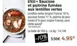 Saucisse et poitrine fumées aux lentilles vertes offres et promotions en ligne chez Thiriet