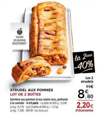 Actuellement, Strudel aux pommes est en promotion chez Thiriet. Toutes les informations utiles comme le prix, les conditions et la durée de validité sont affichées sur cette page. Consultez également les promotions similaires pour Strudel aux pommes, afin de faire le meilleur choix. La promo Strudel aux pommes est valable du 26-01-2026 au 22-02-2026. Si elle est expirée, regardez les autres offres équivalentes. Vous pouvez aussi suivre cette catégorie de produit pour être alerté lorsqu’une nouvelle promotion Strudel aux pommes apparaît chez Thiriet.Questions fréquemment posées au sujet de Strudel aux pommes