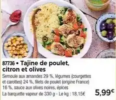 L'offre est disponible dans plusieurs magasins, vérifiez tous les produits pour obtenir le Tajine de poulet, citron et olives le moins cher. Si vous souhaitez savoir si l'article est en vente avec une plus grosse remise dans un autre magasin, consultez la catégorie 'Supermarché'. Ces offres pourraient aussi vous intéresser : CITRON, CITRON & Hauts de cuisses de poulet désossés marinés thym, citron.
