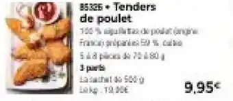 L'offre est disponible dans plusieurs magasins, vérifiez tous les produits pour obtenir le Tenders de poulet le moins cher. Si vous souhaitez savoir si l'article est en vente avec une plus grosse remise dans un autre magasin, consultez la catégorie 'Supermarché'. Ces offres pourraient aussi vous intéresser : Tenders de poulet pane, Tenders de poulet halal & Tenders de poulet halal surgelés.
