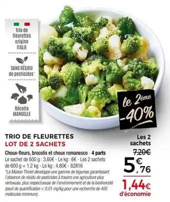 En plus de l'offre Trio de fleurettes, Thiriet propose une large gamme de produits. Consultez le Catalogue Thiriet hebdomadaire pour découvrir les meilleures offres et promotions. En plus de Trio de fleurettes, il y a aussi : Trio, Trio de choux, jambon et comté & Trio de choux, jambon et comté.