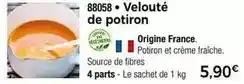 Le prix de l'offre Velouté de potiron se trouve également en haut de la page, ainsi que la date à laquelle l'offre est disponible. Vous pouvez également vérifier les prix dans le Catalogue Thiriet actuel ou sur le site Internet de Thiriet. Les offres vous permettent d'acheter les produits Thiriet au prix le plus bas.