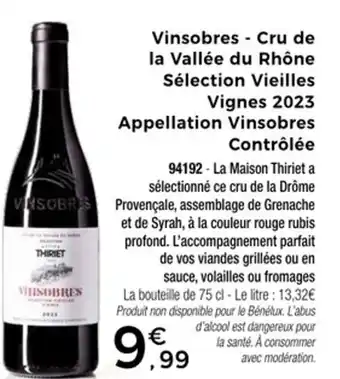 Actuellement en offre chez Thiriet : Vinsobres - cru de la vallée du rhône sélection vieilles vignes 2023 appellation vinsobres contrôlée ✅ Valable du 2-04 au 29-04.