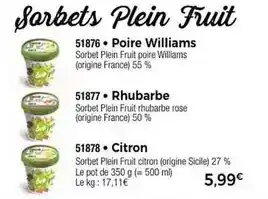 Le prix de l'offre Williams - rhubarbe se trouve également en haut de la page, ainsi que la date à laquelle l'offre est disponible. Vous pouvez également vérifier les prix dans le Catalogue Thiriet actuel ou sur le site Internet de Thiriet. Les offres vous permettent d'acheter les produits Thiriet au prix le plus bas.