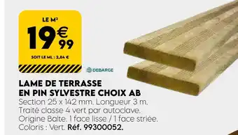 Y a-t-il une promotion sur Debarge lame de terrasse en pin sylvestre choix ab la semaine prochaine chez Tout faire matériaux ?