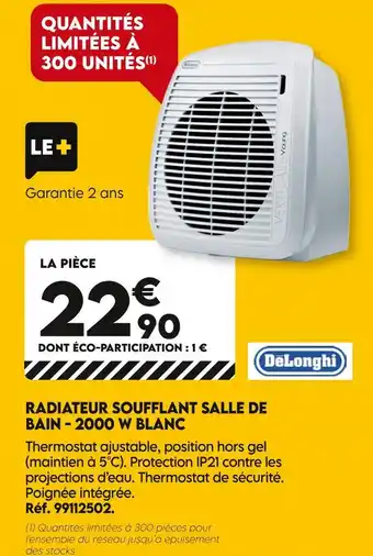 Delonghi radiateur soufflant salle de bain - 2000 w blanc offres et promotions en ligne chez Tout faire matériaux