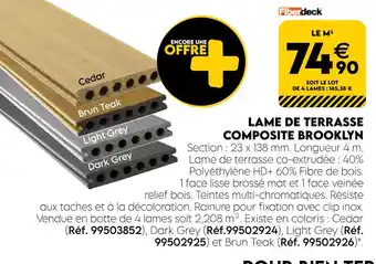 Actuellement en offre chez Tout faire matériaux : Lame de terrasse composite brooklyn ✅ Valable du 28-02 au 4-04.