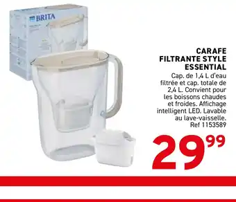 L'offre est disponible dans plusieurs magasins, vérifiez tous les produits pour obtenir le Carafe filtrante style essential le moins cher. Si vous souhaitez savoir si l'article est en vente avec une plus grosse remise dans un autre magasin, consultez la catégorie 'Grands magasins'. Ces offres pourraient aussi vous intéresser : Carafe filtrante marella, BRITA Carafe filtrante aluna calendar & Style motord tendance.