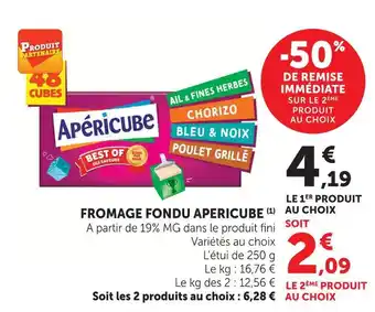 En plus de l'offre Apericube fromage fondu, U Express propose une large gamme de produits. Consultez le Catalogue U Express hebdomadaire pour découvrir les meilleures offres et promotions. En plus de Apericube fromage fondu, il y a aussi : Apéricube fromage fondu, Fromage fondu apericube & FROMAGE FONDU X10 KIRI.