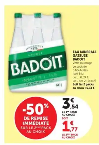 Offre BADOIT Eau minerale gazeuse chez U Express