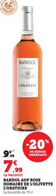 Bandol aop rose domaine de l'olivette l'oratoire : offres et promos U Express à découvrir