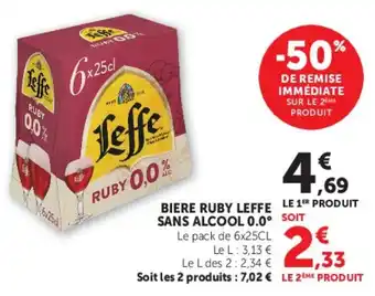 En plus de l'offre Biere ruby leffe sans alcool 0.0°, U Express propose une large gamme de produits. Consultez le Catalogue U Express hebdomadaire pour découvrir les meilleures offres et promotions. En plus de Biere ruby leffe sans alcool 0.0°, il y a aussi : BIÈRE RUBY LEFFE, Leffe bière d'abbaye blonde sans alcool 0.0% & Bière sans alcool 1664.