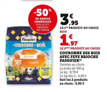 Le prix de l'offre Brioche pasquier couronne des rois avec fève se trouve également en haut de la page, ainsi que la date à laquelle l'offre est disponible. Vous pouvez également vérifier les prix dans le Catalogue U Express actuel ou sur le site Internet de U Express. Les offres vous permettent d'acheter les produits U Express au prix le plus bas.