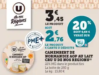 Camembert de normandie aop au lait cru u de nos regions : offres et promos U Express à découvrir