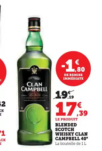 Actuellement en offre chez U Express : CLAN CAMPBELL 40° Blended scotch whisky ✅ Valable du 3-02 au 15-02.