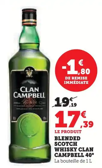 Offre Clan campbell blended scotch whisky 40° chez U Express