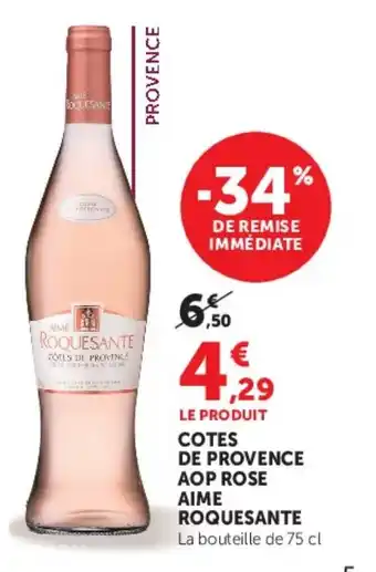 Actuellement en offre chez U Express : Cotes de provence aop rose aime roquesante ✅ Valable du 28-04 au 10-05.