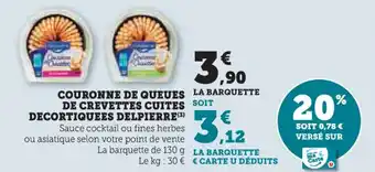 Offre Couronne de queues la barquette de crevettes cuites decortiquees delpierre chez U Express