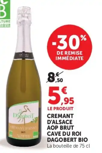Cremant d'alsace aop brut cave du roi dagobert bio : offres et promos U Express à découvrir