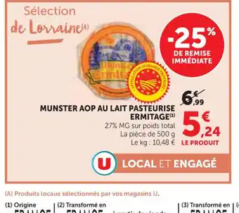 Actuellement en offre chez U Express : ERMITAGE Munster aop au lait pasteurise ✅ Valable du 10-03 au 15-03.
