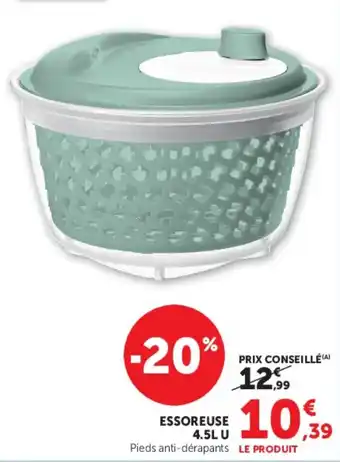 En plus de l'offre ESSOREUSE U, U Express propose une large gamme de produits. Consultez le Catalogue U Express hebdomadaire pour découvrir les meilleures offres et promotions. En plus de ESSOREUSE U, il y a aussi : ESSOREUSE 4.5L U, ESSOREUSE 4.5L U & U essoreuse 4.5l.