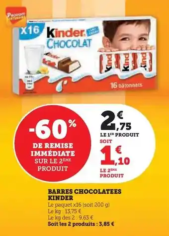 Le prix de l'offre Ferrero rocher - barres chocolatées kinder se trouve également en haut de la page, ainsi que la date à laquelle l'offre est disponible. Vous pouvez également vérifier les prix dans le Catalogue U Express actuel ou sur le site Internet de U Express. Les offres vous permettent d'acheter les produits U Express au prix le plus bas.