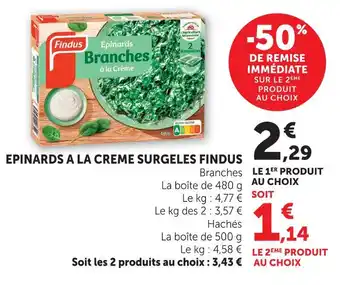 Actuellement en offre chez U Express : Findus épinards à la crème surgelés branches ✅ Valable du 21-04 au 3-05.