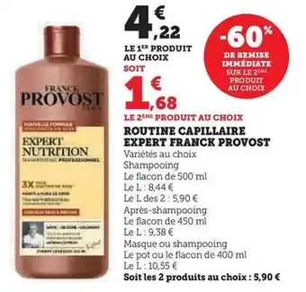 Le prix de l'offre Franck provost - routine capillaire expert se trouve également en haut de la page, ainsi que la date à laquelle l'offre est disponible. Vous pouvez également vérifier les prix dans le Catalogue U Express actuel ou sur le site Internet de U Express. Les offres vous permettent d'acheter les produits U Express au prix le plus bas.