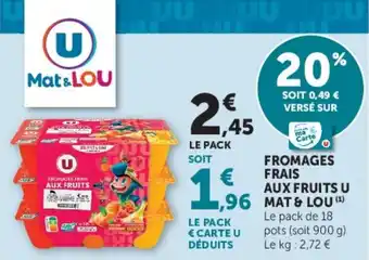 Actuellement en offre chez U Express : Fromages frais aux fruits u mat & lou ✅ Valable du 28-04 au 10-05.