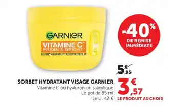 Offre GARNIER Sorbet hydratant visage chez U Express