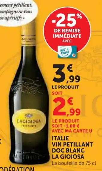 Italie vin petillant doc blanc la gioiosa offres et promotions en ligne chez U Express