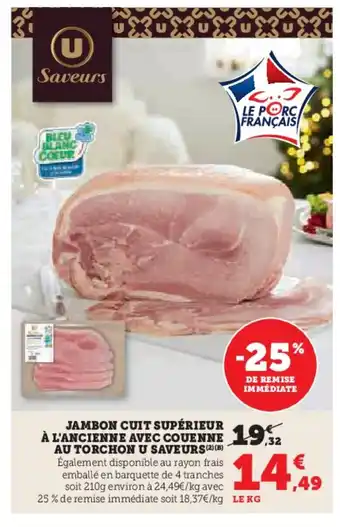 Jambon cuit supérieur à l'ancienne avec couenne au torchon u saveurs : offres et promos U Express à découvrir