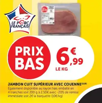 L'offre est disponible dans plusieurs magasins, vérifiez tous les produits pour obtenir le Jambon cuit supérieur avec couenne le moins cher. Si vous souhaitez savoir si l'article est en vente avec une plus grosse remise dans un autre magasin, consultez la catégorie 'Supermarché'. Ces offres pourraient aussi vous intéresser : Jambon cuit supérieur avec couenne, Jambon cuit supérieur avec couenne & Jambon cuit supérieur avec couenne.