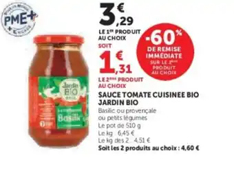 JARDIN BIO Sauce tomate cuisinee bio : offres et promos U Express à découvrir