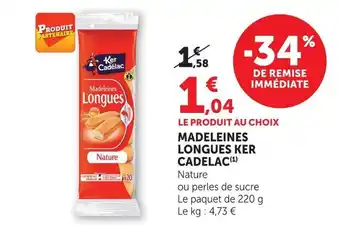 L'offre est disponible dans plusieurs magasins, vérifiez tous les produits pour obtenir le Ker cadelac madeleines longues le moins cher. Si vous souhaitez savoir si l'article est en vente avec une plus grosse remise dans un autre magasin, consultez la catégorie 'Supermarché'. Ces offres pourraient aussi vous intéresser : KER CADELAC Madeleines longues, KER CADELAC Madeleines longues & Ker cadelac madeleines longues.