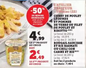 L'atelier traiteur - rougail saucisse et riz basmati ou chili con carne et riz : offres et promos U Express à découvrir