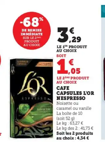 Offre L'OR NESPRESSO Cafe capsules chez U Express