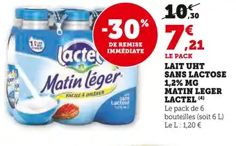 Lactel lait uht sans lactose 1,2% mg matin léger