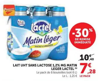 Offre Lait uht sans lactose 1,2% mg matin leger lactel chez U Express