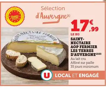 Actuellement en offre chez U Express : Les terres d'auvergne saint-nectaire aop fermier ✅ Valable du 10-02 au 22-02.