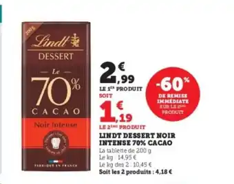 Actuellement en offre chez U Express : LINDT Dessert noir intense 70% cacao ✅ Valable du 20-01 au 1-02.
