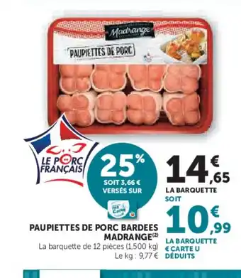 Actuellement en offre chez U Express : MADRANGE Paupiettes de porc bardees ✅ Valable du 17-02 au 1-03.