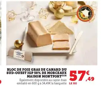 MAISON MONTFORT Bloc de foie gras de canard du sud-ouest igp 50% de morceaux offres et promotions en ligne chez U Express