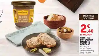 Actuellement en offre chez U Express : Maistres occitan - rillettes pur canard ✅ Valable du 24-02 au 8-03.