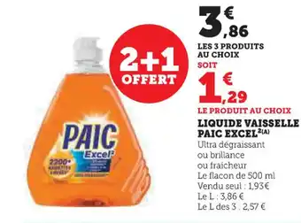 Offre PAIC EXCEL Liquide vaisselle chez U Express