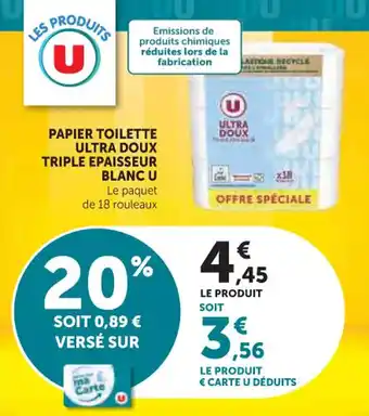 Actuellement en offre chez U Express : Papier toilette ultra doux triple epaisseur blanc u ✅ Valable du 10-03 au 22-03.