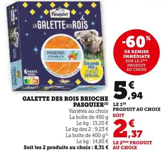 Le prix de l'offre Pasquier galette des rois brioche se trouve également en haut de la page, ainsi que la date à laquelle l'offre est disponible. Vous pouvez également vérifier les prix dans le Catalogue U Express actuel ou sur le site Internet de U Express. Les offres vous permettent d'acheter les produits U Express au prix le plus bas.
