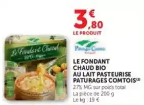 Paturages - le fondant chaud bio au lait pasteurise offres et promotions en ligne chez U Express