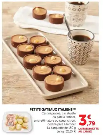 En plus de l'offre Petits gateaux italiens, U Express propose une large gamme de produits. Consultez le Catalogue U Express hebdomadaire pour découvrir les meilleures offres et promotions. En plus de Petits gateaux italiens, il y a aussi : Assortiment de 6 petits gâteaux, Sans marque assortiment de 6 petits gâteaux & 100 MOULES À PETITS GÂTEAUX ALPINA.