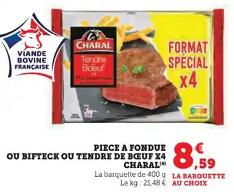Piece a fondue ou bifteck ou tendre de bœuf x4 charal 400 g